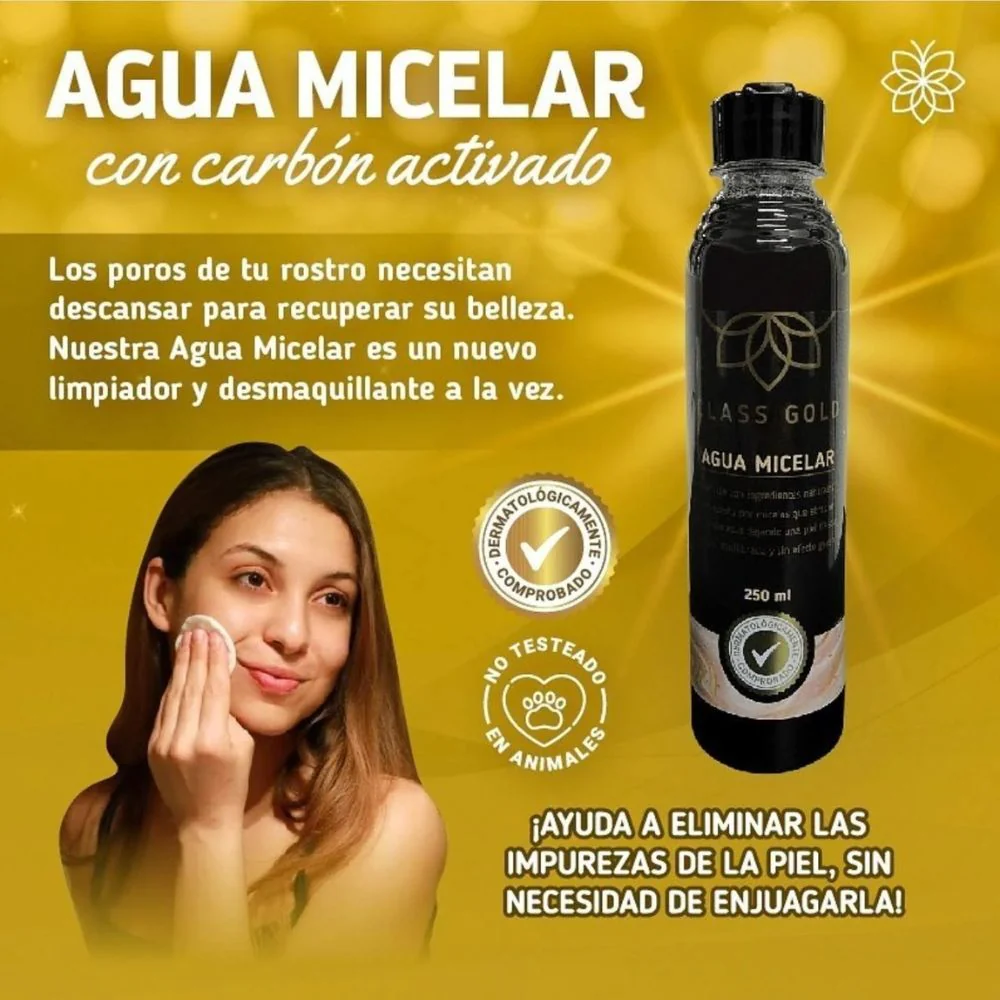 - AGUA MICELAR CLASS GOLD: El Agua Micelar ClassGold, es un producto maravilloso para limpiar el rostro de todo tipo de impurezas acumuladas durante el día, debido a polución, restos de maquillaje, sudor o restos de otros productos utilizados en el rostro