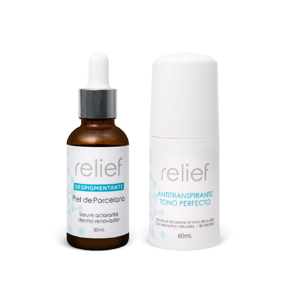 Este kit para las axilas está diseñado para devolver el tono natural a las axilas, desvanecer manchas oscuras y dar suavidad a esta zona de la piel. Además previene la sudoración. BENEFICIOS Este kit despigmentante de piel y antitranspirante está diseñado para devolver el tono natural a las axilas, desvanecer manchas oscuras y dar suavidad a esta zona de la piel. Además previene la sudoración. Nuestro Kit Axilas contiene: 1. Un despigmentante el cual te ayudará a atenuar las manchas en las axilas, te permitirá recuperar su tono natural. Este despigmentante también puedes usarlo en diferentes zonas del cuerpo. Contiene: 30ml 2. Un desodorante antitranspirante, que a parte de mantener las axilas frescas, sin malos olores y sin sudoración, te ayudará a aclarar y suavizar la piel de esta zona. Contiene: 60ml